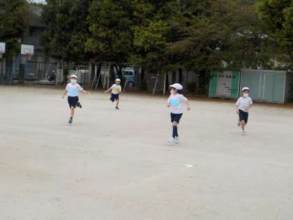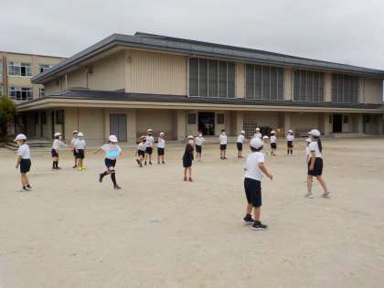先週の金曜日,2年生になって初めての体育をしました。「からだほぐしの運動」をしました。みんなで グリコ をしたり,ふえおにをしたり楽しい時間を過ごしました。