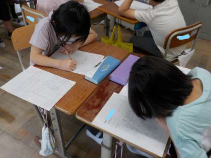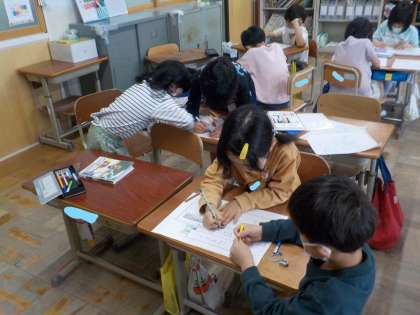 1年生に学校の教室を紹介しようと計画しています。今日は各教室の分担を決めて教室紹介の看板を作りました。