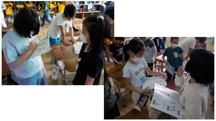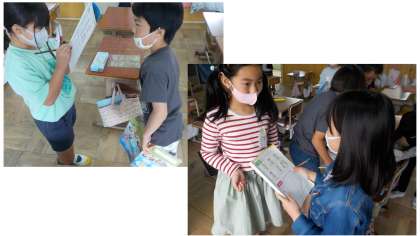 外国語の学習で「How are you?」と友だちにたずね,「I'm happy」など答える活動をしました。