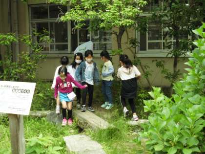 「お庭で遊んできます。」「お水やり行ってきます。」と時間があれば外で遊んでいます。「トンボがいたで!」「あさがおの芽が出たで!」外遊びをしながら季節の移り変わりをたくさん報告してくれる子どもたちです。
