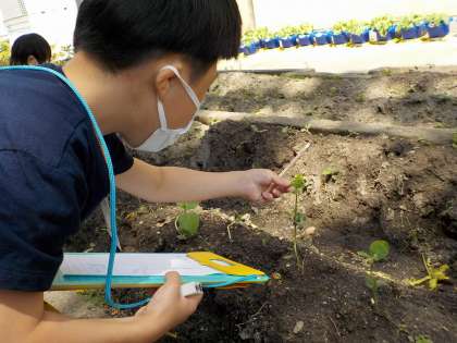 芽が出てすっかり大きくなったので,畑に植え替えをしたところへ,観察に出かけました。