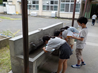 今日の4時間目の社会の学習で,「じゃ口調査隊」をしました。子どもたちは,校舎内のじゃ口を調査し,何のときに使われているかを考えました。調査の後に子どもたちは,学校でたくさん水が使われていることを知り,そこから学習問題を考えました。