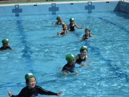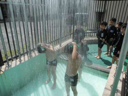 夏に向けて気温も上がり,プールでの学習が楽しい季節になってきました。先週の低水位での水慣れが終わり,今週のプールは少し深くなっています。歩いたり,走ったり,動物になり切って水の中を移動したり。今日はカニさんになり切って,鼻から息を吐いて口から空気を吸う練習をしました。そうそう。子どもたちが始めと終わりには通るシャワーは子どもたち曰く,『地獄のシャワー』だそうです。
