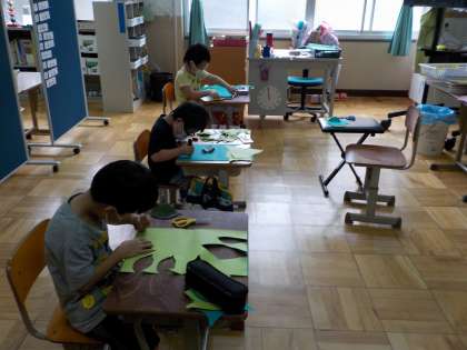描いては切り,描いては切り,最後にテープをつけて,3年生に貼ってもらいました。