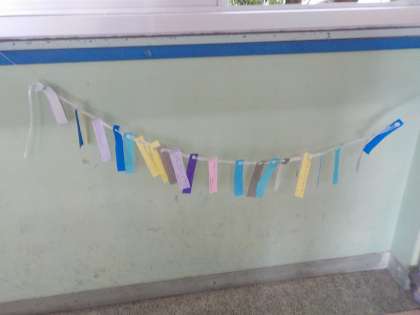 金曜日の昼休みは係の人が企画してくれたお誕生日会でした。お誕生日会のプログラムの中で、係の人が短冊を配ってくれました。みんなで願い事を書いて、廊下に飾りました。みんなのお願い、かなうといいね。係の人、すてきなイベントをありがとう!