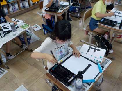 「トン!スー!ピタッ!」のリズムで一画一画丁寧に書いています。