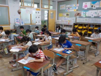 毎日朝の10分間は朝学習です。今日は100マス計算に挑戦しました。タイムをはかって、前回の記録よりよい記録を目指してがんばりました。集中してがんばっています。