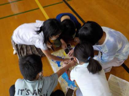 絶滅危惧種の動物たちが取り札のカードになっていたり,保護することでポイントがついたり,ルールも初めて知りましたが,交流学級の友だちと楽しく遊びながら学んでいました。
