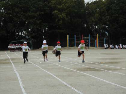 小学生になって初めての運動会。お兄さん・お姉さんたちの姿に「はやーい!」「すごい!」と感動をした1年生。そして,お兄さん・お姉さんたちにも負けないぐらい頑張った1年生。終わってからの感想を聞いてみると・・・「めちゃめちゃ楽しかった!」「またやりたい!」良い思い出ができたようです。来年はまたひとまわり成長をして,もっともっと頑張りたいと思った1年生でした。