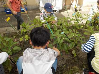 2年 ピーマンを収穫したよ