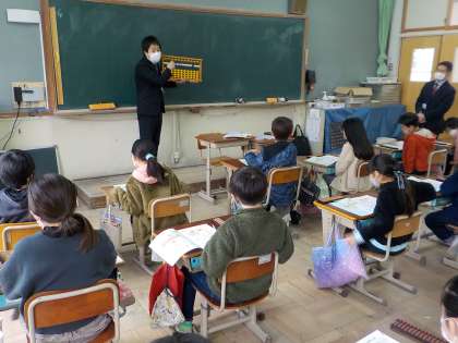 算盤教育連盟の講師の方にお越しいただいて、そろばんの使い方や計算の仕方を教えていただきました。