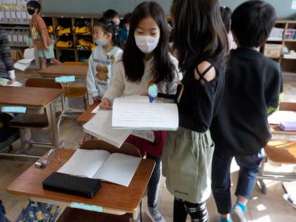 国語科でスーホの白い馬を学習しました。「スーホと白馬の心のつながり」を見つけながら読み、心が一番動かされたところを考えました。今日は違うところを選んだ友達と交流し、自分の思いを伝え合いました。