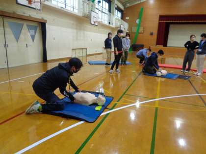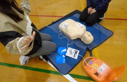 本日救命救急講習を行いました。消防の方に来ていただき、正しい胸骨圧迫の仕方や、AEDの使い方について教えていただきました。実際に胸骨圧迫をしてみると、正しい姿勢で100回行うととても大変なことに気づきました。また、「プールで倒れている児童がいたらどうする?」「胸骨圧迫が行えない場合はどうする?」等、様々な想定を考えて話し合うことができました。子どもたちの命を守りきるために、教職員全員が自ら考え行動できるよう気を引き締めて過ごしていきます。