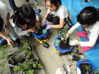 今日は植木鉢の土を入れ替えて野菜を植えました。