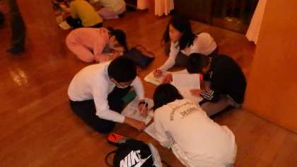 これが1日目最後の活動です。いろいろ予定変更はありましたが、みんな元気です。