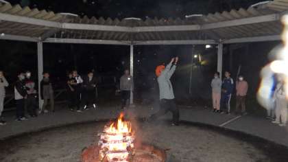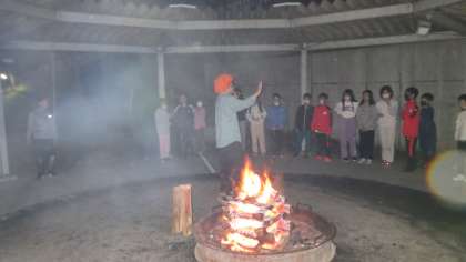 真ん中の人は誰でしょう?みんな元気にキャンプファイヤーを終えることができました。