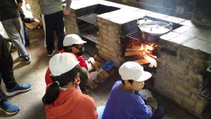 野外炊事まだまだ続きます。火力を維持するのは難しいものです。