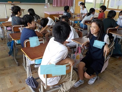 毎週金曜日のぐんぐんタイム(帯時間)は「お話タイム」です。話す力を伸ばす時間です。今日のテーマは「遊びに行くなら山?海?」でした。ペアで質問をしあってできる限り会話を続けます。相手の話す内容につなげて質問や意見が言えたかな?