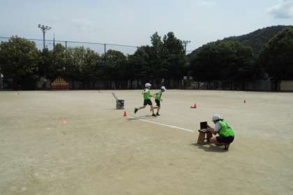 今日は体育の学習でリレーをしました。チームで話し合いながら、バトンパスやリードの練習をすることで、どんどん上達してきています。チームごとにベストタイムを目指して頑張っています。