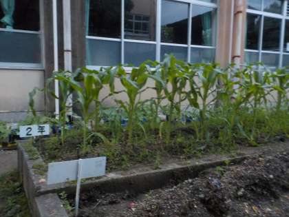 「先生、ピーマンに花が咲いたよ!」「スイートコーンが50cmくらいになったよ!」と野菜の成長の様子を毎日、子どもたちが教えてくれます!