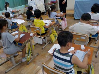 本格的に学習が始まりました。2年生は書写で初めて「水書」をしました。筆遣いを意識して一生懸命書こうとする姿が見られていました。また、漢字ドリルも同じように丁寧に頑張る姿が見られました。