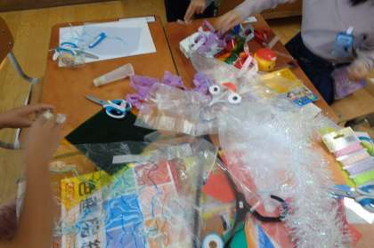 図画工作科では、ハンガーと飾りを使って、風に揺れる作品を作りました。ハンガーにひもやリボンをつけて、ひらひら揺れる素敵な作品ができました。カラーセロハンは、光に当たると床や壁に色がつくことが分かりました。キラキラしている折り紙は、揺れるたびにキラキラと光を反射し、教室が楽しく明るい感じになりました!