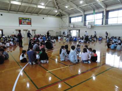 迎えてくれたお兄さん・お姉さんの素晴らし歌声に瞬きをするのも忘れるほど聞き入っていた1年生。たてわりグループでの活動も楽しむことができました。