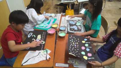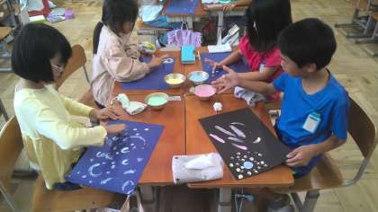 「とろとろねんどでかく」の学習では、液体粘土の絵の具を混ぜて色を作り、画用紙に指や手のひらで模様や絵を描きました。いつもとは違って指で描くことに楽しみながら取り組むことができました。