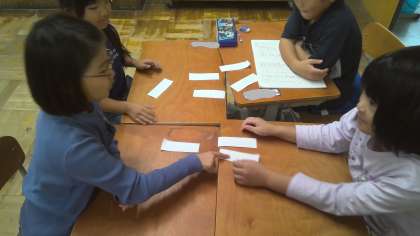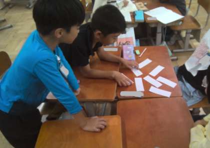 主語と述語についた学習したあと、主語と述語を上手くつなげるゲームをしました。