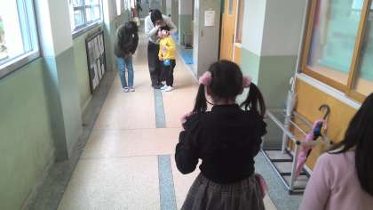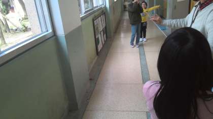 理科の学習で音の伝わりの実験を糸電話を使ってしました。廊下で長い糸電話をつくって友達の声が聞こえたときに驚きと感動の様子でした。