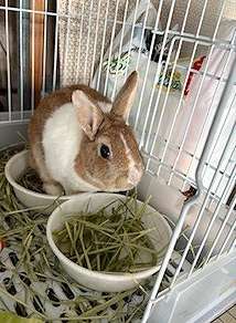 嵐山東小学校に新しい仲間が増えました。うさぎの「クッキー」と「くるみ」です。長岡第十小学校から来ました。職員室前にいますので見に来てくださいね!