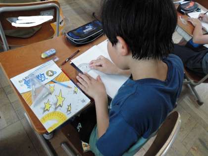 昨日の学習で角度をはかってかくことができるようになりました。それを生かして、今日は三角形をかきました。どうすればかくことができるのか、説明をすることもできました。