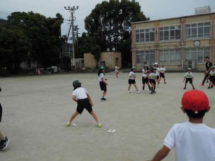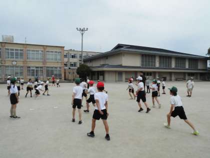 今日の中間休みはみんなあそび係さんが企画してくれた学年ドッジボールでした。運動場に出てみんなで楽しく遊びました。
