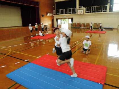 力の入れ方や押し方、ゆるめ方などを工夫することをめあてに「かたあしすもう」を楽しみました。バランスをとりながら対戦していました。最後はチーム戦で勝負することにも楽しんでいました。