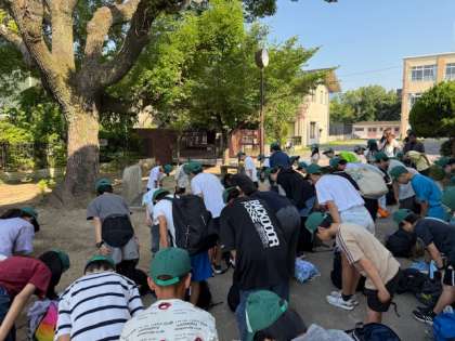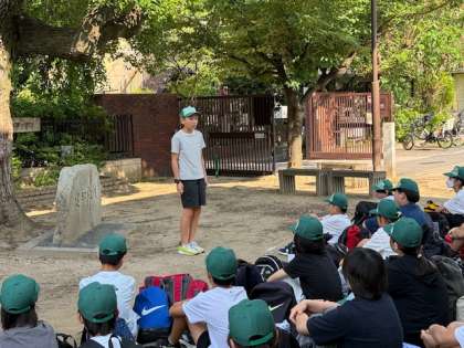 出発式を行い、気持ちを高めて姫路城を目指します。