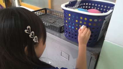 身の回りにあるでこぼこを見つけて、粘土に写しとりました。写しとってみると様々なでこぼこがあり、「このでこぼこ、どこでとたの?」と友だちと尋ね合っていました。