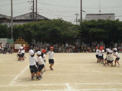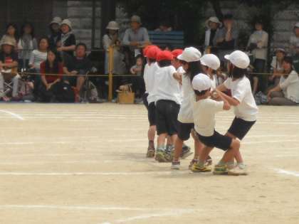 4人が1チームとなり,1本の竹の棒を引き合う競技です。4人が知恵を出し合い,力を合わせて戦いました。