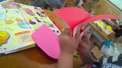 ぱくぱく動く様子がおもしろくて「花みたい!」「口みたい!」と、何に作り変えようか楽しそうに考えていました。