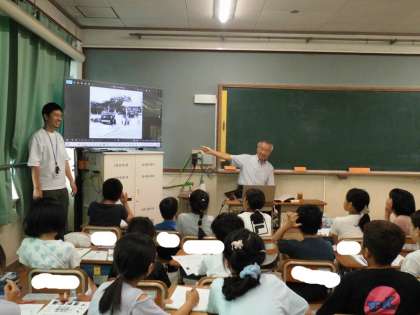 総合で伝統について、社会科で祇園祭について学んでいます。今日は、祇園祭で、放下鉾の保存会の方に来ていただきお話を伺いました。知らないことをたくさん聞くことができ、よい時間になりました。13日には希望した人が惹き初めにも参加させてもらいます。