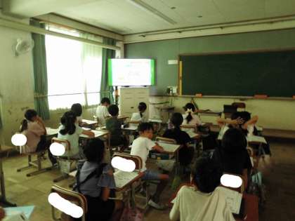 学活で「エコライフチャレンジ」に取り組みました。地球温暖化が問題になっていることを知り、どんなことをすれば少しでも防ぐことができるのか考えました。夏休み中に実践します。がんばりましょう!