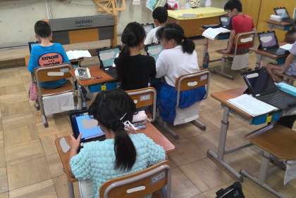 ローマ字を使って、自己紹介カードを作りました。少しずつですが、ローマ字表を見ながら頑張っていました。