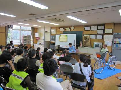 6月9日(土)自転車安全教室が開催されました。今日はあいにく雨が降っていて,実際に自転車に乗って実習することはできませんでしたが,西京警察署や交通安全推進委員会の方から自転車の正しい運転の仕方や運転ルールについて教えていただきました。
