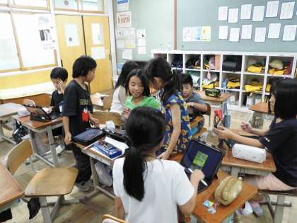 総合的な学習の時間では、「あらひがみこし」をすることになりました。5つの願いをこめたみこしを考えています。今日は、どんなみこしがいいか、グループで話し合いました。