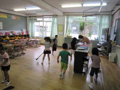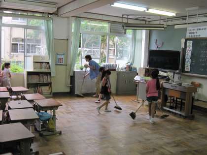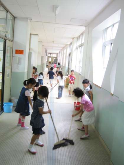 1年生は,これまで6年生に掃除をしてもらったり掃除の仕方を教えてもらってきました。今は,教えてもらったことを思い出しながら,自分たちで掃除をしています。