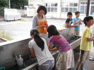 6月11日(月)6月の委員会活動がありました。保健委員会は手洗いの実験を,図書委員会はあじさい読書週間にむけて,栽培委員会は緑のカーテンの準備に取り組んでいました。