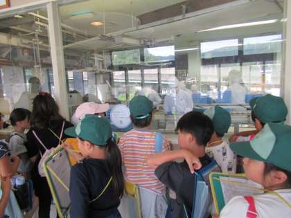 社会見学では、八つ橋の生地が落ちてくる様子が見られたり
