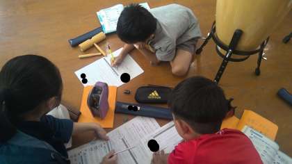 今日は、色々なリズムを組み合わせてグループごとにリズムアンサンブルをつくりました。