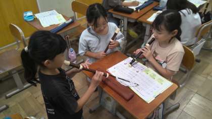 「アチャパチャノチャ」の曲をグループでリコーダーで練習をしました。少しずつタンギングに気をつけて吹くことができるようになってきました。
