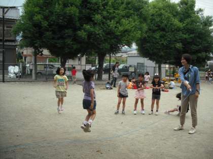 一つ目は,樋ノ上公園です。樋ノ上公園では,遊具で遊んだり,大縄飛びで仲良く遊んだりしました。そんな中,虫探しに一生懸命の男の子たちが何か見つけましたよ!それは,木から出る樹液の固まり。「きっと何かの虫が食べに来るよな〜。」「カブトムシ来るかな〜。」などと楽しい会話が聞こえてきました。