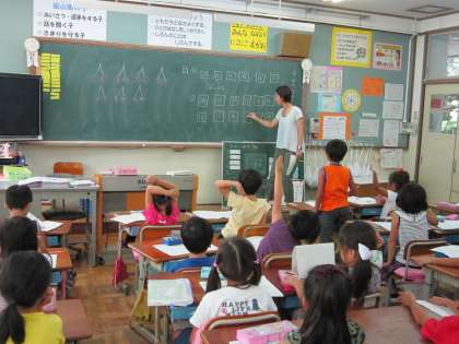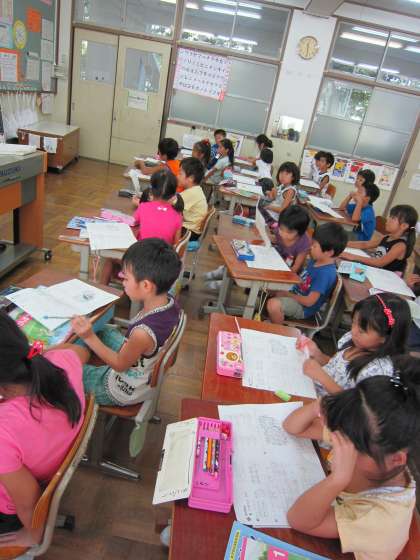 1年生は,算数で「20までのかず」の学習をしていました。この日は,学習の成果を確かめたあとの振り返りをしていました。